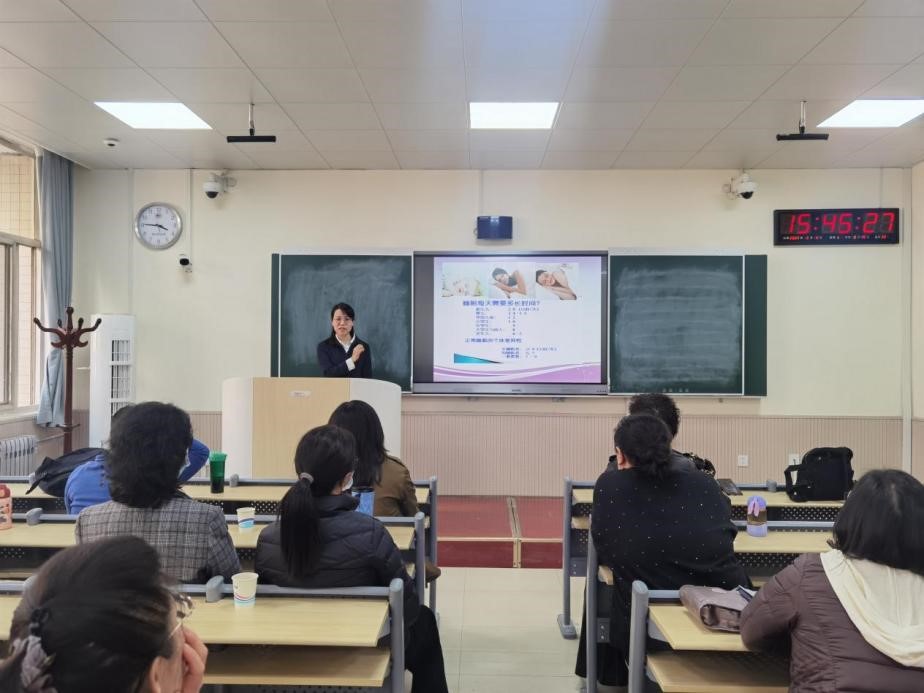 活动中,李转会主任医师以关注睡眠,关爱健康为主题,从睡眠的原因、睡眠的流行病学、睡眠障碍的表现和危害、拥有优质睡眠的方法等方面宣传了科学睡眠的常识与卫生健康知识,帮助女教职工预防及管理睡眠障碍,减轻睡眠问题,养成健康的睡眠习惯,对女教职工保持良好健康的生活状态起到了助力作用。