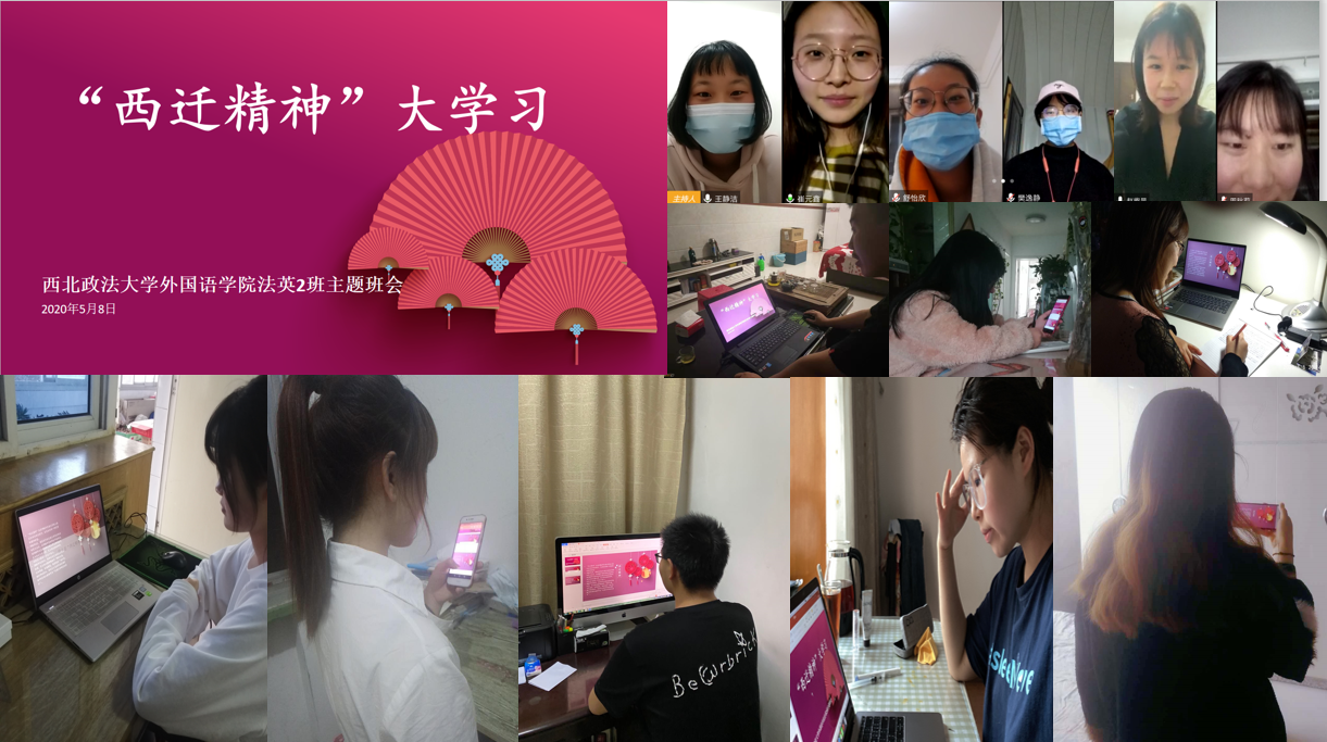 为深入学习贯彻习近平总书记关于传承和弘扬“西迁精神”的重要指示,进一步加强学生思想道德教育,激发学生爱国情怀,4月28日至5月12日,2138CC太阳集团2017级、2018级、2019级10个班三百余名学生在线通过诗歌朗诵会、主题班会、倡议接龙等方式积极学习 “西迁精神”, 并通过个人分享、集体讨论等方式表达自己的学习感悟。