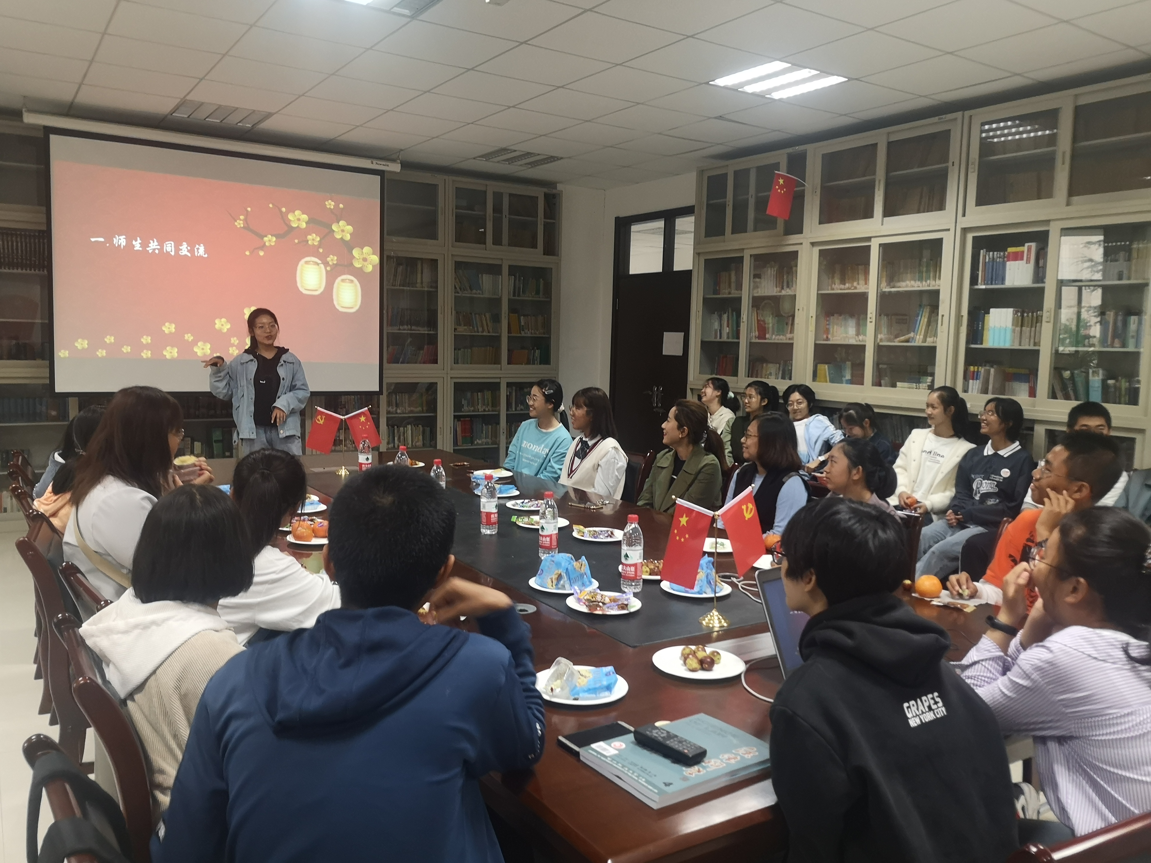 10月1日上午,在国庆节和中秋节之际,为了让一些家在外省市节日期间不回家的2020级新生能度过一个美好的假期,2138CC太阳集团举办了“师生一家亲 温暖度佳节”师生联谊会,党委副书记吕凌,团委书记秦立、2020级辅导员郝源老师,与来自甘肃、广东、山西、山东等地的30多名外地学生欢聚一堂,共庆佳节,通过与学生亲切交谈和互动,把学院的关怀送到了每个学生的心里。