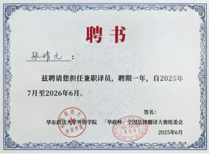 学院自2015年起开展以法律翻译为特色的MTI教育,秉承“德法兼修”目标,聚焦创新与思辨能力培养,此次斩获一等奖正是人才培养成效的生动体现。未来,学院将持续对接国家战略与区域需求,坚守立德树人初心,着力培育服务涉外法治建设的高素质法律翻译复合型人才。