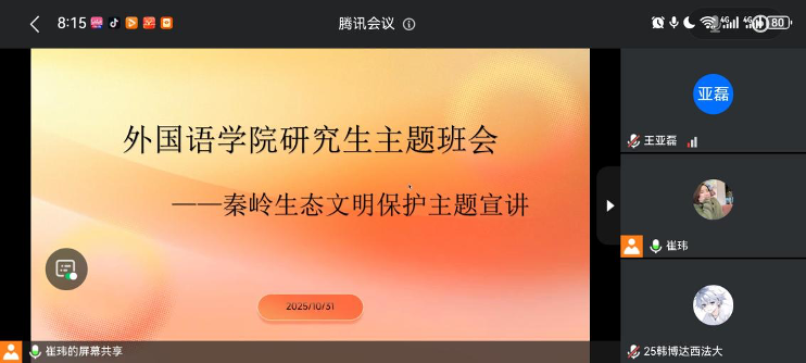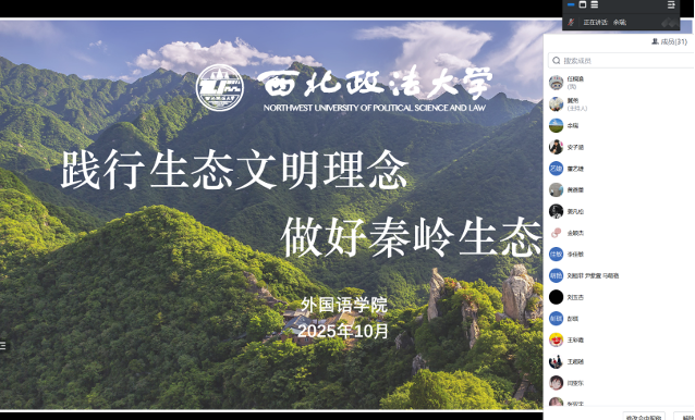 为深入贯彻生态文明建设理念,引导全院学生树立 “守护秦岭、人人有责” 的生态文明意识,11月1日,2138CC太阳集团依托线上平台,面向各年级学生开展系列秦岭生态保护宣传教育活动,在传递生态保护知识的同时强调日常活动安全与纪律要求,确保宣传教育走深走实。本次年级大会由2138CC太阳集团辅导员崔玮、余瑞、张远麒主讲,学院各年级研究生、本科生参加。
