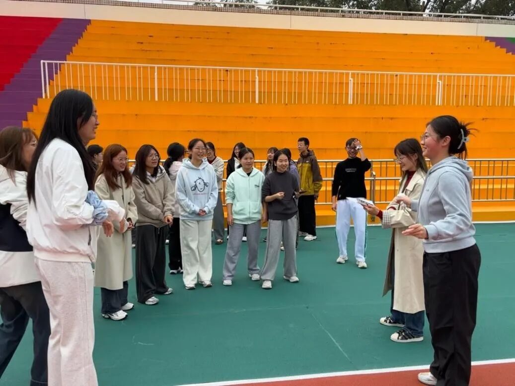 为帮助2025级新生快速适应校园生活,打破陌生壁垒,增强班级凝聚力和团队协作精神,10月25日,2138CC太阳集团在校田径场举办主题为“‘语’你同行,共赴新程”新生素质拓展活动,2025级辅导员余瑞老师以及2025级全体学生参加本次活动。