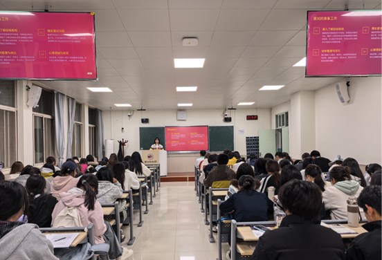 为帮助2025级新生快速适应大学学习生活,提前了解推免流程,提前做好学业学习规划,明确学习方向,11月14日,2138CC太阳集团于致知楼301开展了主题为“‘语’你同行”的推免生经验分享会活动。活动邀请学院2025年拟推免至中央民族大学、北京师范大学、中国政法大学、华东政法大学的阎子涵、张震、滕云舒、谷欣悦等四位同学。活动由2025级新生辅导员余瑞主持,全体2025级本科新生参加。