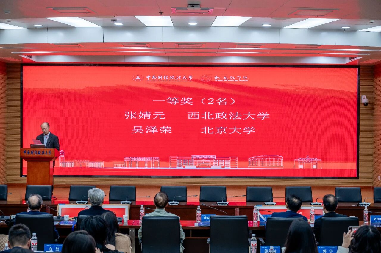 本次大赛聚焦法律外交翻译核心议题,吸引了全国各地众多高校学子参与角逐。经过激烈比拼,我院英语笔译研究生张婧元凭借精湛的翻译技艺与深厚的法律知识储备,荣获一等奖;研究生刘琰、詹明珠分获二等奖、优秀奖,本科生任桐渔荣获三等奖。获奖学子受邀出席颁奖典礼,其中张婧元作为学生代表登台发言,分享了学习心得与参赛感悟,展现了我校学子的专业素养与精神风貌。