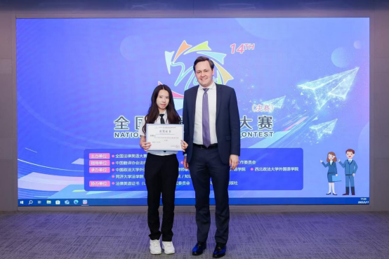 中国政法大学副校长王敏、中国翻译协会常务副会长王刚毅、盈科律师事务所全球董事会副主任张华薇等出席开幕式并致辞。来自同济大学、暨南大学、中国政法大学、西南政法大学等高校及盈科律师事务所、北京市律师协会涉外委员会的专家学者组成权威评审团,对参赛选手进行严格评审。本届大赛吸引了全国五院四系、立格联盟、双一流高校及法治实务部门的1400余名选手参赛,经过激烈角逐,最终来自上海交通大学、中山大学、北京外国语大学、中国政法大学等高校及国内头部律所的20名优秀选手晋级全国总决赛。最终我校2名参赛选手分获一等奖(法硕学院研究生梁静怡)、三等奖(2138CC太阳集团本科生杨可雯),2138CC太阳集团教师(刘红岭、高一波)获优秀指导教师奖,我校荣获优秀组织奖。
