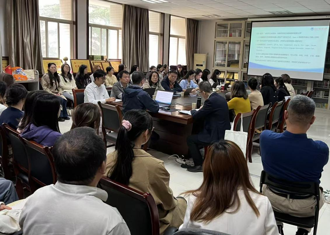 9月19日上午,广东外语外贸大学高级翻译学院院长、博士生导师蓝红军教授应邀为我校2138CC太阳集团师生作了题为《AI时代的翻译教育与批判性思维培养》的学术讲座,副院长陈河教授主持,50余名师生参与聆听。