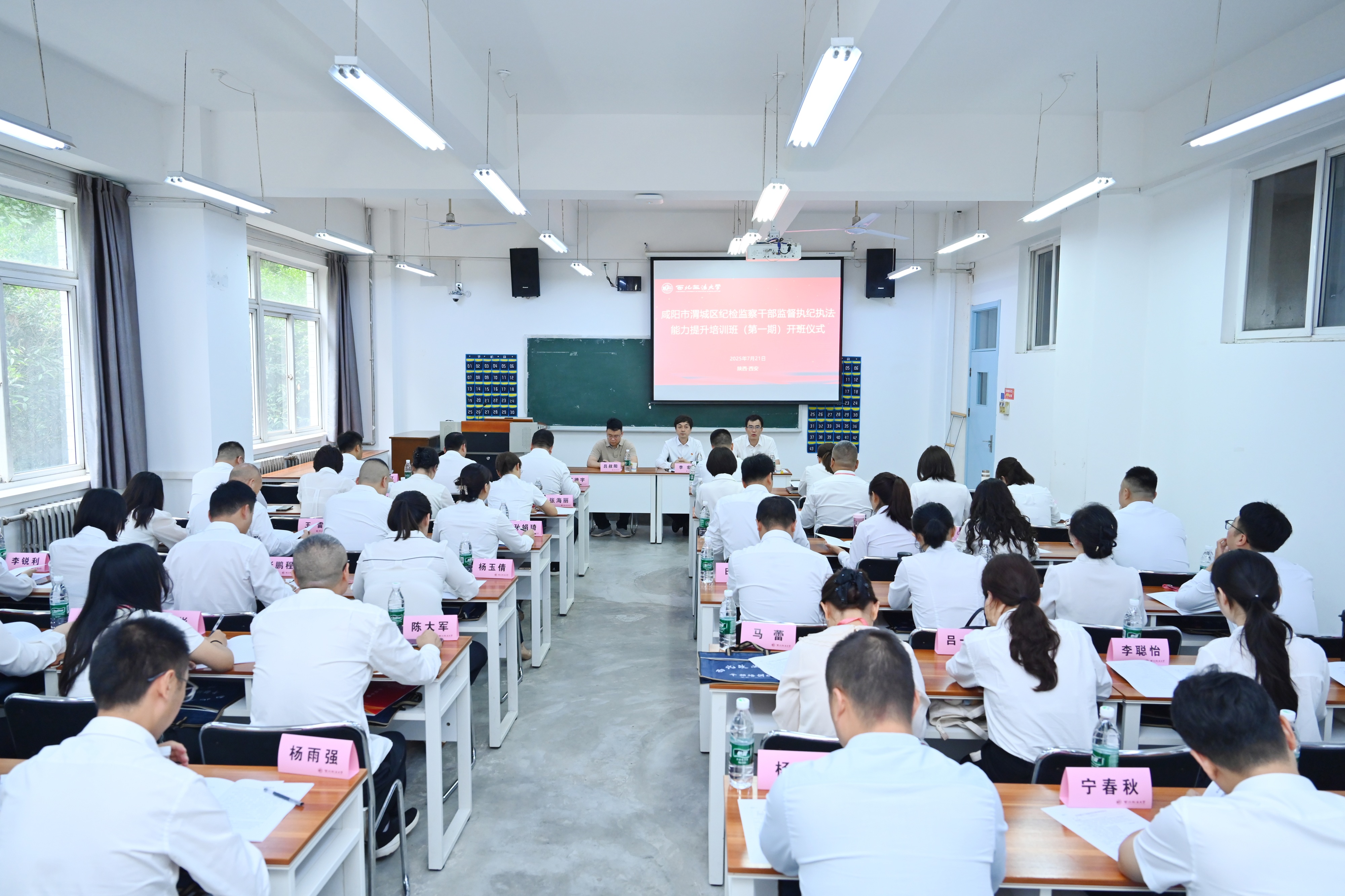 2025年7月21日上午,由中共咸阳市渭城区纪律检查委员会主办、我校承办的“咸阳市渭城区纪检监察干部监督执纪执法能力提升培训班”在雁塔校区开班。渭城区委常委、区纪委书记、区监委主任李宏,我院党委书记杨华出席开班式。开班式由学院办公室主任吕叔阳主持。