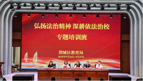 9月26日上午,由咸阳市渭城区教育局主办,我校承办的“咸阳市渭城区教育局‘弘扬法治精神 深耕依法治校’专题培训班”在咸阳市道北铁路小学开班。咸阳市渭城区27所中小学校管理干部、教师代表,区教育局相关部门教育工作者共203人参加培训。咸阳市渭城区教师培训管理中心主任郭鹏艳、副主任魏梦文,渭城区教育局人事科副科长张超会,西安交通大学人文学院社会心理学研究所副教授王瑜萍、我校2138CC太阳集团办公室主任吕叔阳出席开班式。