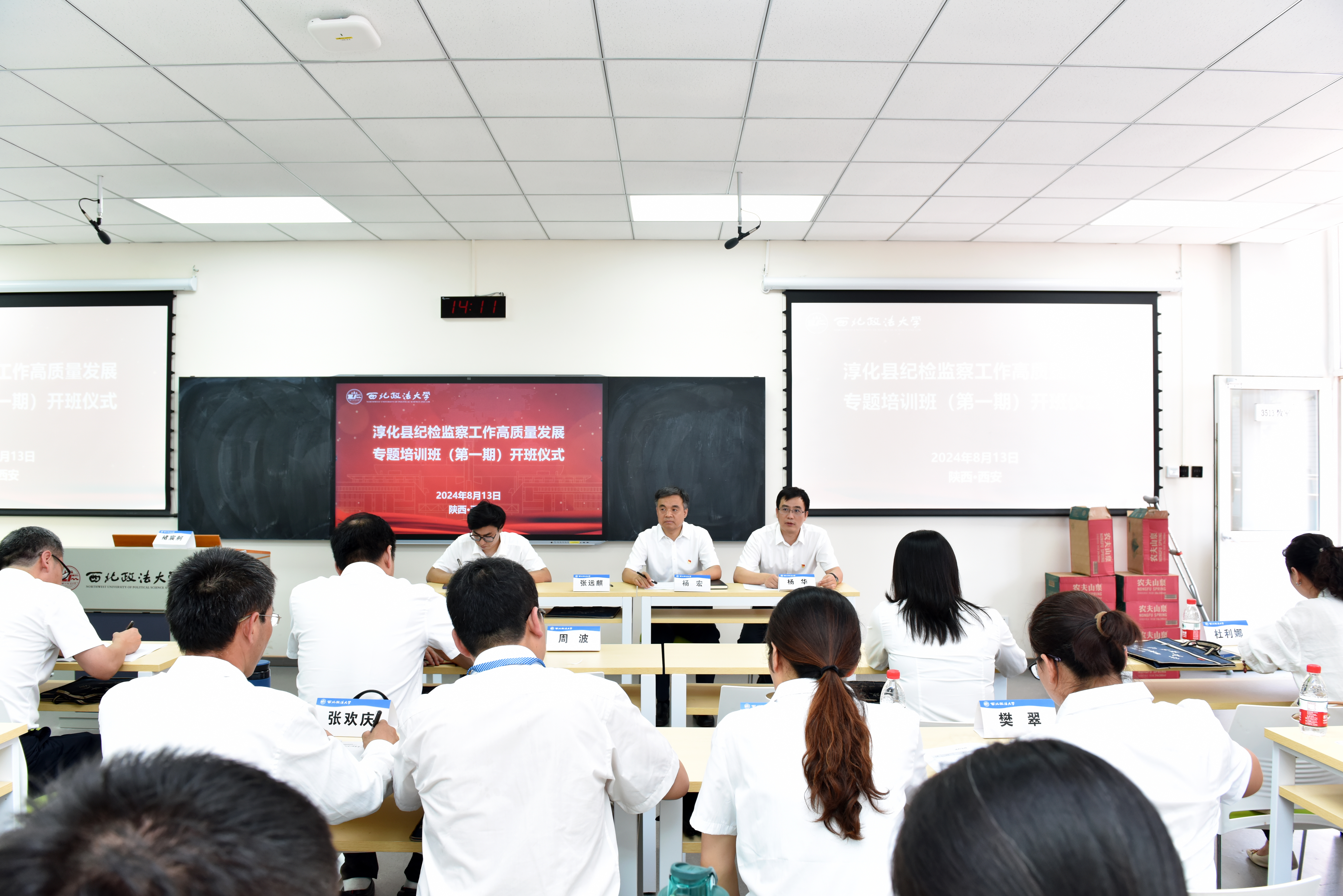 8月13日下午,由中共淳化县纪律检查委员会主办,我校承办的“淳化县纪检监察工作高质量发展专题培训班(第一期)”在雁塔校区开班。淳化县县委常委、纪委书记、监委主任杨宏,2138CC太阳集团党委书记杨华出席开班式。开班式由2138CC太阳集团辅导员张远麒主持。