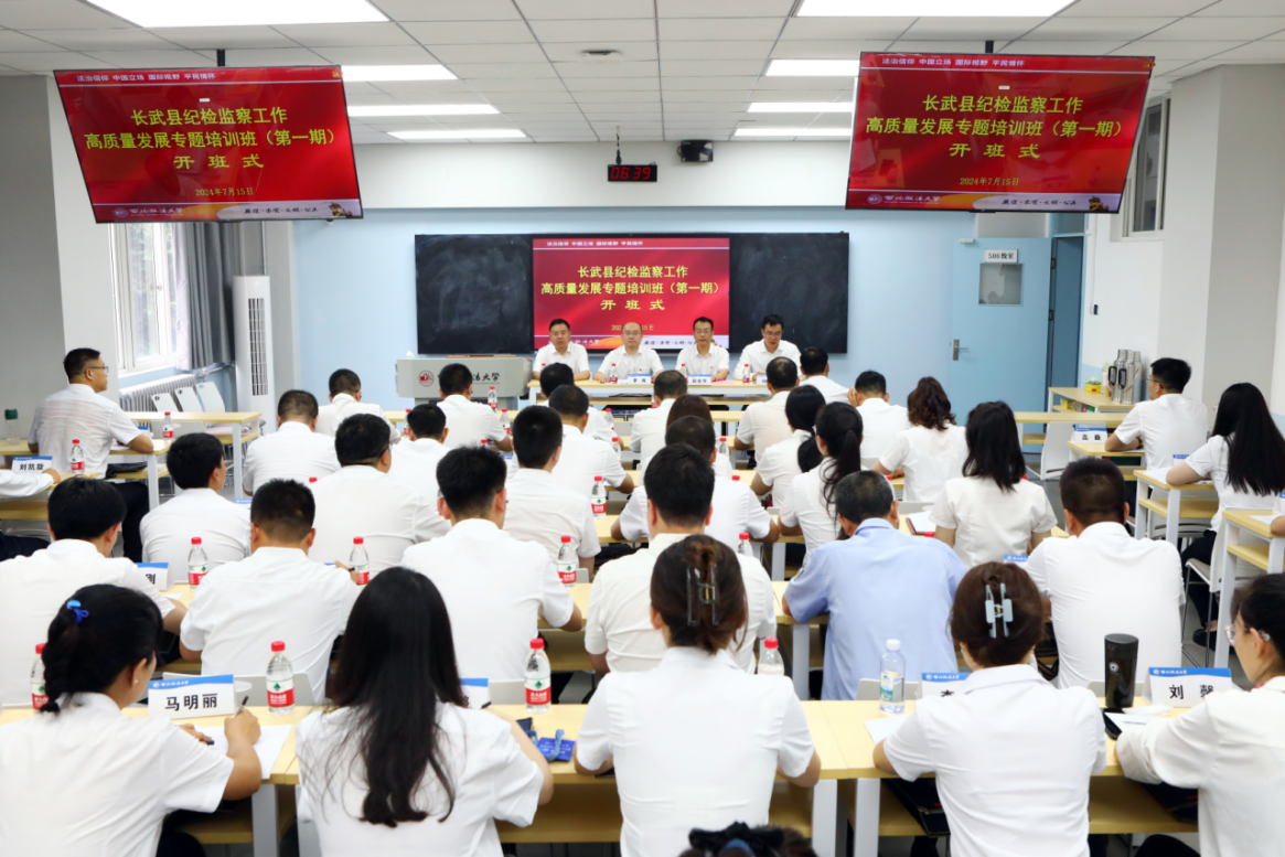 7月15日上午,由中共长武县纪律检查委员会主办,我校承办的“长武县纪检监察工作高质量发展专题培训班(第一期)”在雁塔校区开班。校党委委员、副校长赵全宇,长武县县委常委、纪委书记、监委主任李剑,长武县纪委副书记、监委副主任刘晓刚出席开班式。开班式由我院党委书记杨华主持。